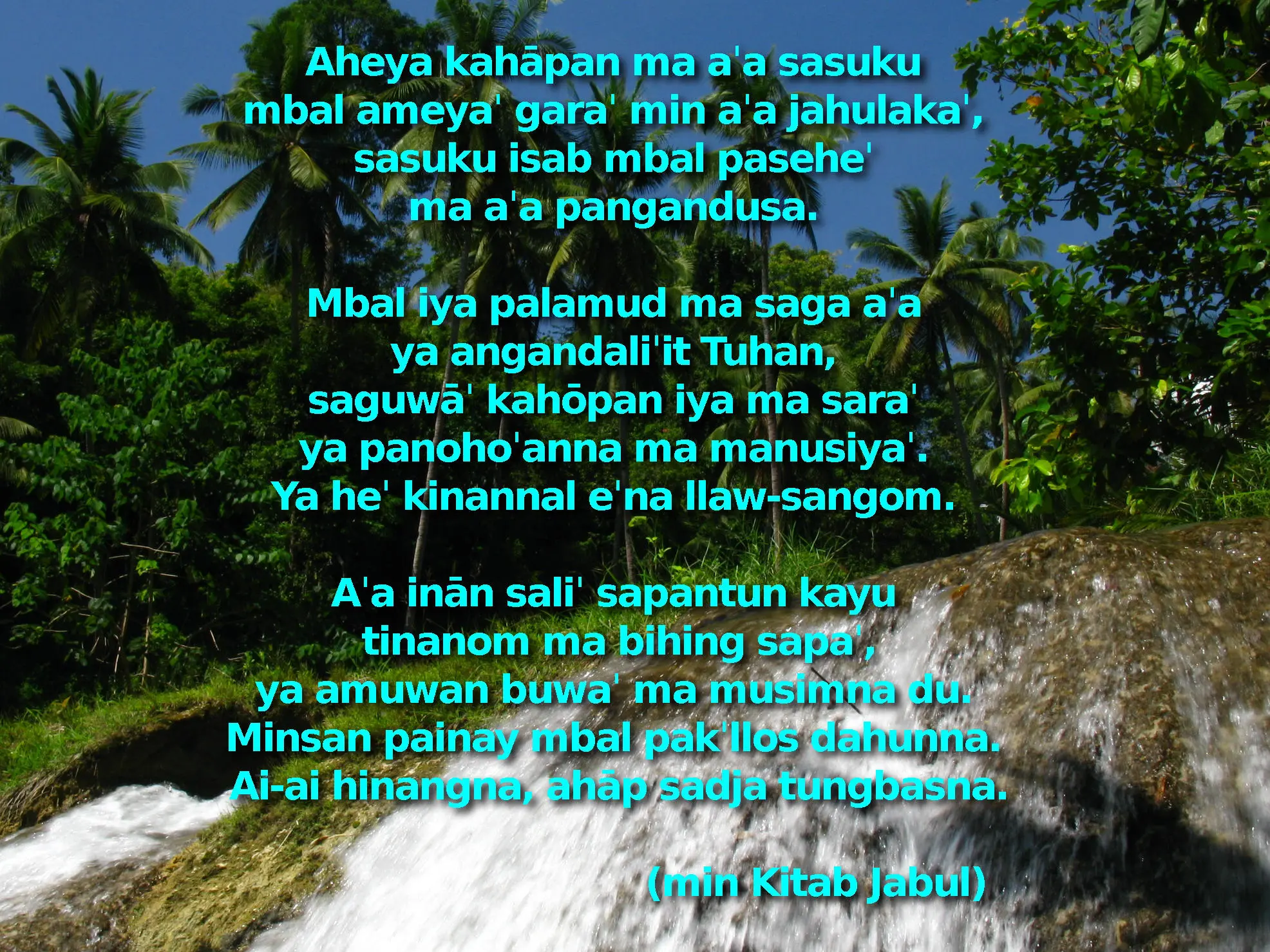 Aniya' maitu saga patta' ma bahasa Sinama ma pasalan palman Tuhan, tōp nihinang tarpaulin atawa manjari saga patta' itu kinose'an bo' pinat'nna' ma saga luma'bi atawa pinasaplag ni saga kampung maka bagay.